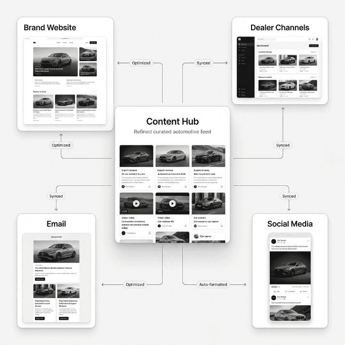 Surface curated content across brand website, dealer channels, social and email.